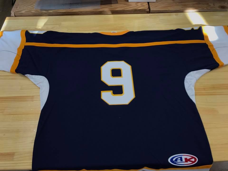 釧路市 教職員チーム Scratchアイスホッケー 様 ユニフォーム製作 2017年11月14日 プリントアイスホッケーユニフォーム ご注文の商品完成しました! 前面のロゴ、背番号、肩番号の2色(ホワイト、ゴールド)プリントです!前面のロゴは立体的に見えるように製作しました!カッコいいですね〜 ご利用ありがとうございます! 自分だけのオリジナルウエア製作 プロフォーマンス×自分流