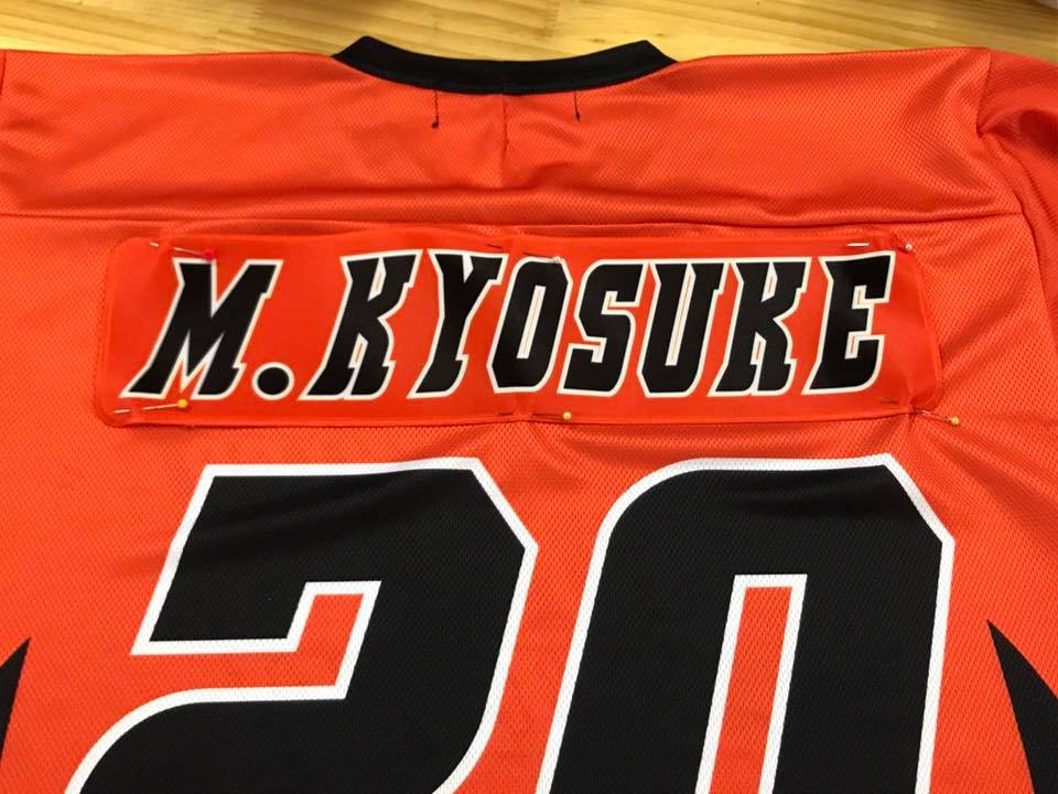 昇華のユニフォームに現在ネームバー取り付け中です!